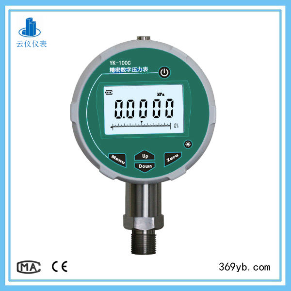 YK-100C帶通訊數字壓力表,是我公司新推出的微功耗智能產品。它采用了先進微功耗器件以及獨具特色的軟件處理技術,可真實地連續測量壓力數值。內置LI電池可24小時連續工作3年以上;它采用大屏幕段碼寬視角液晶顯示窗,讀數十分醒目、直觀。該產品出廠前,經過了高低溫老化、應力老化和溫度補償等工藝,即使在 (0 ~ 50)℃ 范圍、一年時間內、99% 置信概率的苛刻條件下,也能夠確保產品的準確度。它主要用于校驗壓力(差壓)變送器、精密壓力表、一般壓力表、血壓計等其它壓力儀器儀表,也可廣泛用于需要精密測量壓力的場合等。它是指針式精密壓力表的更新換代產品。