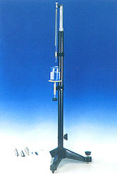 在裝有水平調節螺絲的在足座上,豎直裝一套筒,套筒頂端安裝帶有刻度的游標,筒內插入刻有毫米刻度尺的鋼管,利用旋扭通過里面的滑輪,鏈條可以調節刻度鋼管在套筒中升降,從而可以讀出彈簧長度的變化。