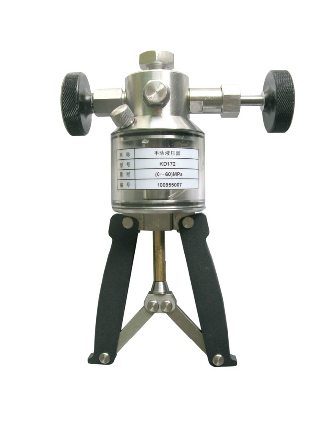 手操壓力泵是有手柄,活塞桿.透氣體,泵蓋,放油手把,微調(diào)手把,表接頭等組成.旋轉(zhuǎn)放油手把關(guān)閉放油閥,手握手操壓力泵手柄,用力握緊,放松反復(fù)進(jìn)行,從而帶動(dòng)活塞桿往復(fù)運(yùn)動(dòng),活塞桿往復(fù)運(yùn)動(dòng)幾次就可以產(chǎn)生輸出壓力0-60Mpa.
